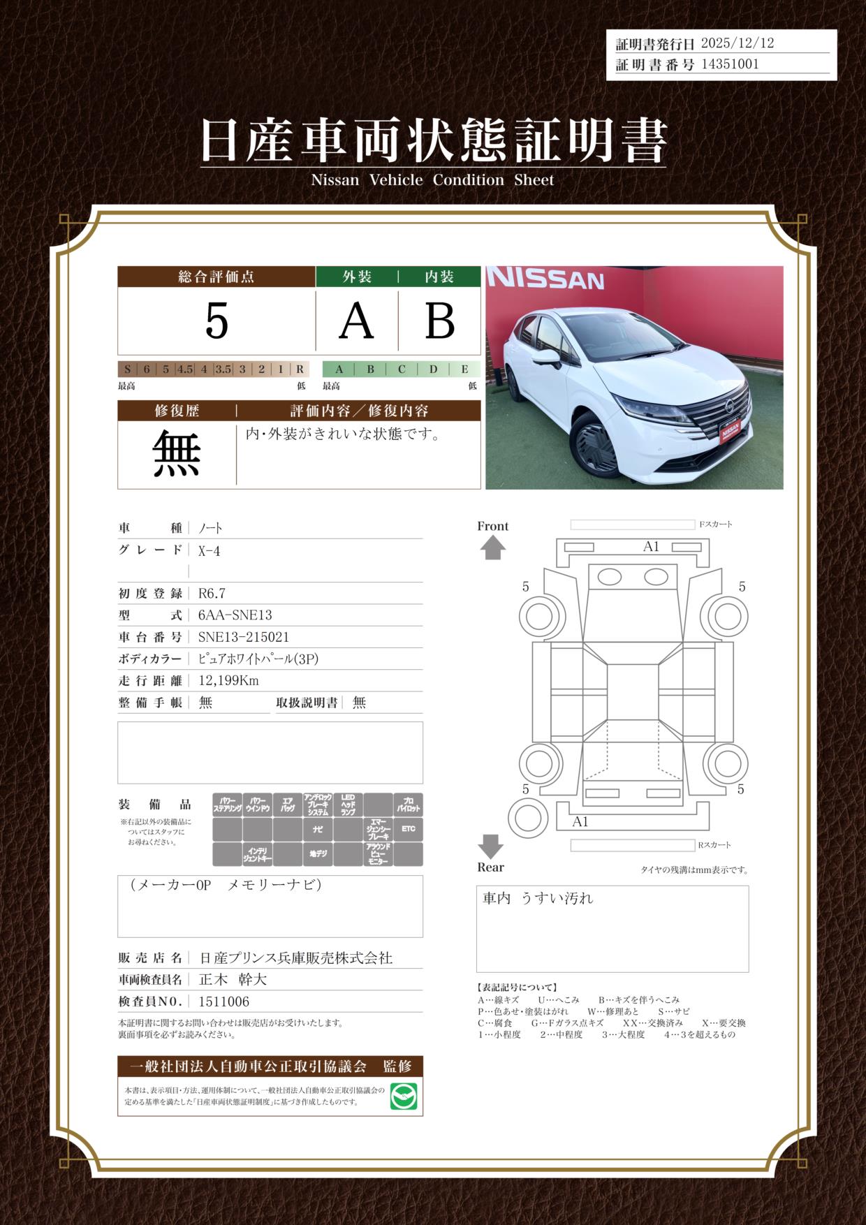 日産自動車認定の中古車販売店です。