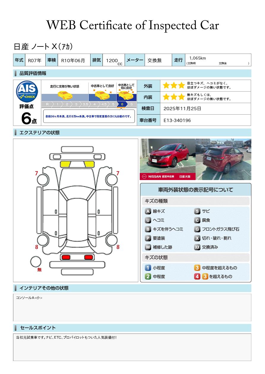 現状括弧書き内の年月まで車検有効期限が残っていますが、ご成約時に新しく車検を取り直します。なお取り直しの費用は車両価格に含まれています。