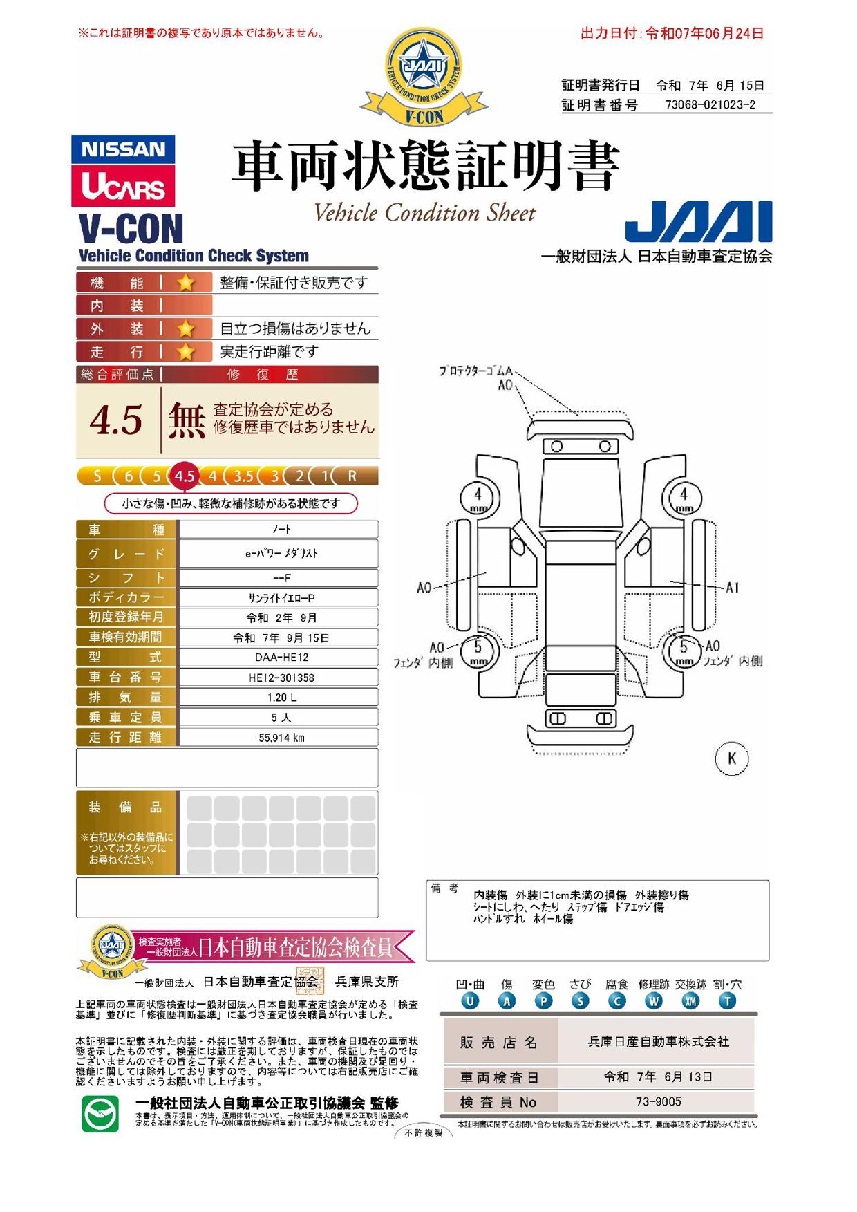 現状括弧書き内の年月まで車検有効期限が残っていますが、ご成約時に新しく車検を取り直します。なお取り直しの費用は車両価格に含まれています。