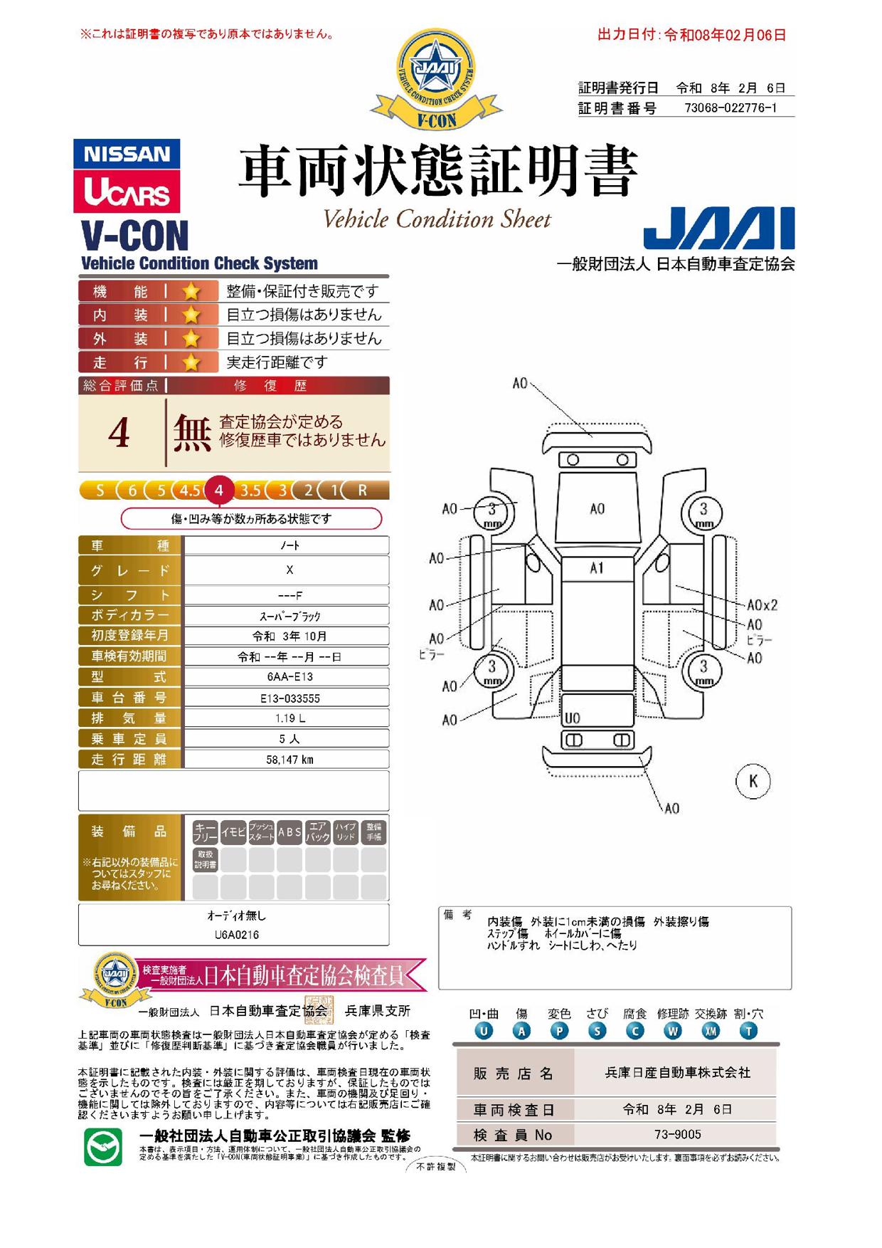 現状括弧書き内の年月まで車検有効期限が残っていますが、ご成約時に新しく車検を取り直します。なお取り直しの費用は車両価格に含まれています。