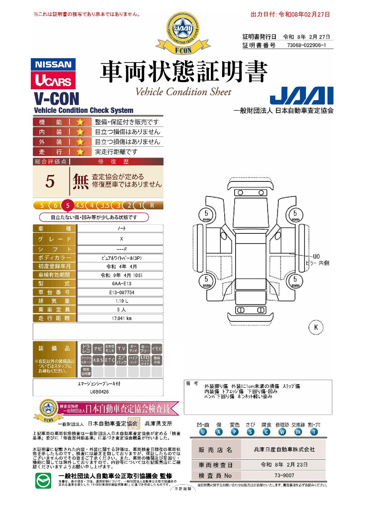 現状括弧書き内の年月まで車検有効期限が残っていますが、ご成約時に新しく車検を取り直します。なお取り直しの費用は車両価格に含まれています。