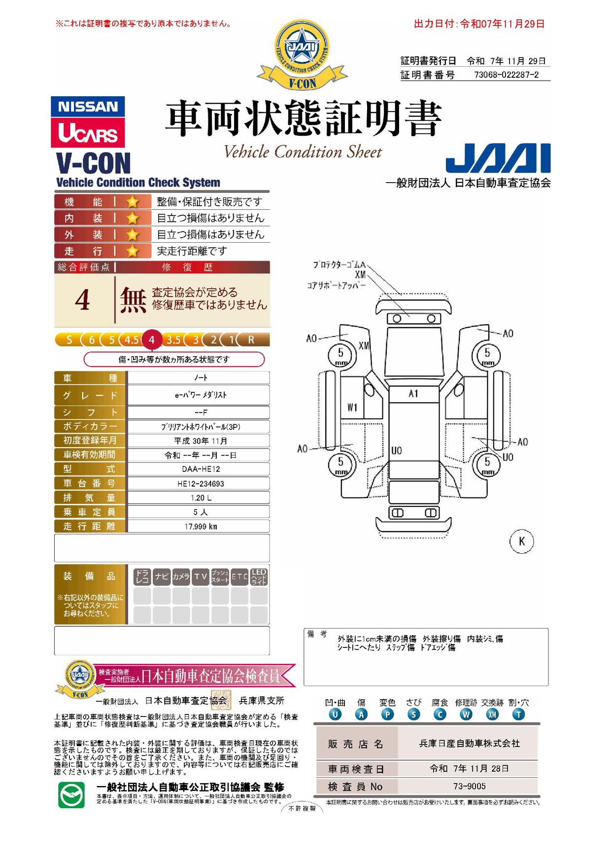 現状括弧書き内の年月まで車検有効期限が残っていますが、ご成約時に新しく車検を取り直します。なお取り直しの費用は車両価格に含まれています。