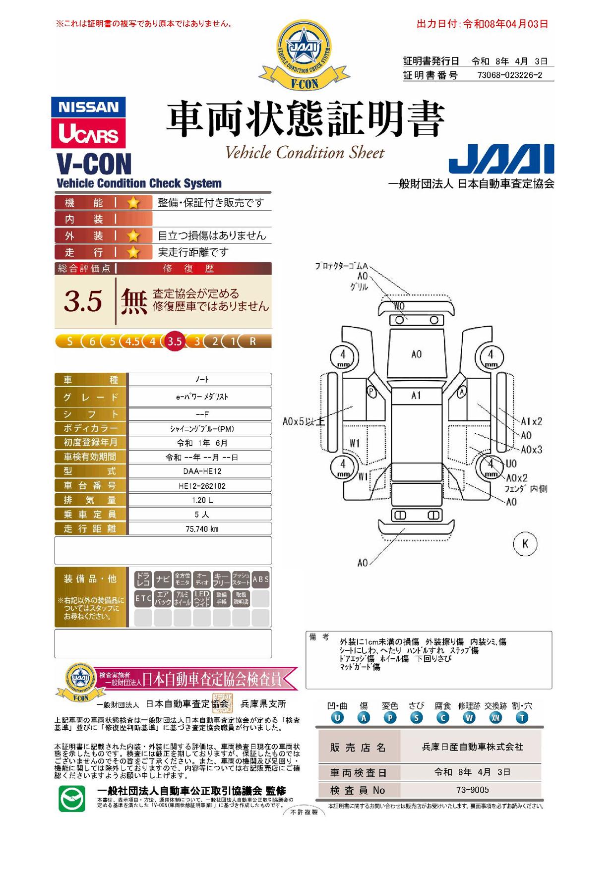現状括弧書き内の年月まで車検有効期限が残っていますが、ご成約時に新しく車検を取り直します。なお取り直しの費用は車両価格に含まれています。