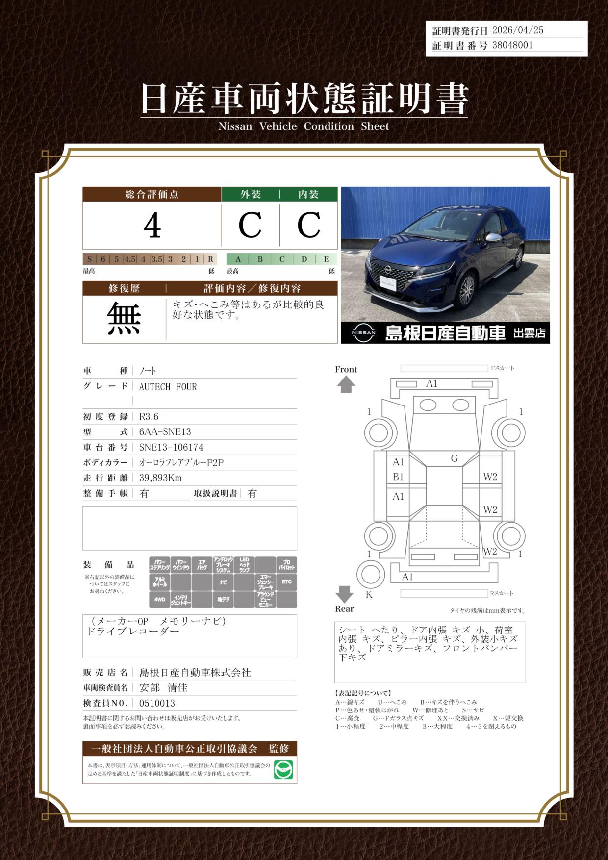 こちらのクルマは 「日産認定中古車」。 だから、4つの安心をお約束。