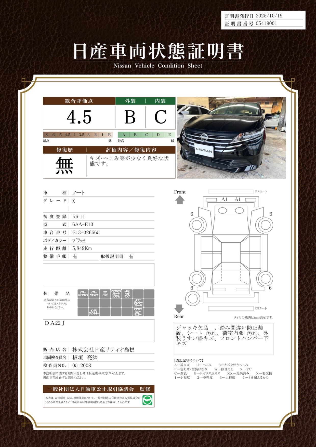ノート 1200cc 1.2 X 自社社用車 全周囲カメラ 踏み間違い防止