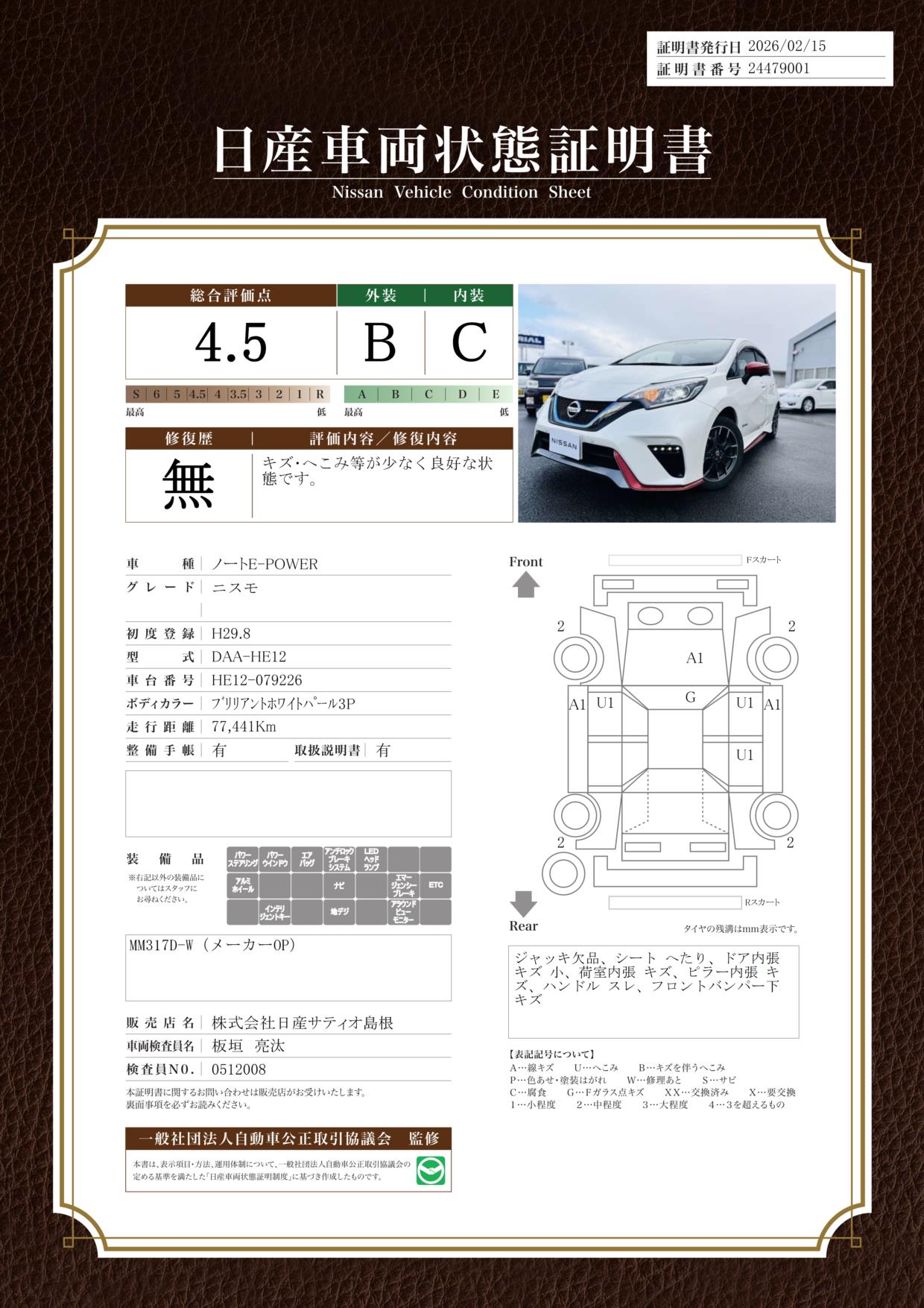 現状括弧書き内の年月まで車検有効期限が残っていますが、ご成約時に新しく車検を取り直します。なお取り直しの費用は車両価格に含まれています。