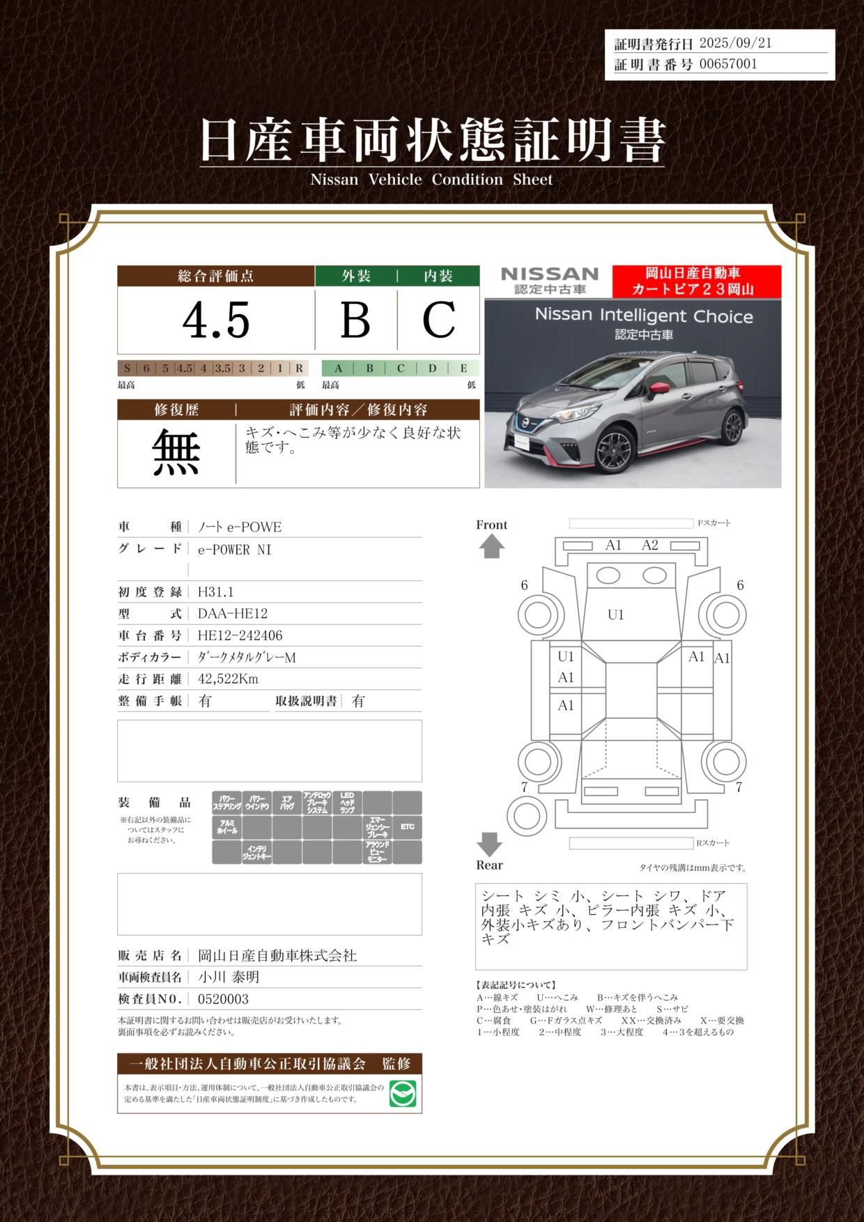 ◆日産認定中古車◆アラウンドビューモニター◆ETC◆CDチューナー◆衝突被害軽減ブレーキ◆インテリジェントキー◆インテリミラー◆ワンオーナー◆禁煙車◆日産ワイド保障1年