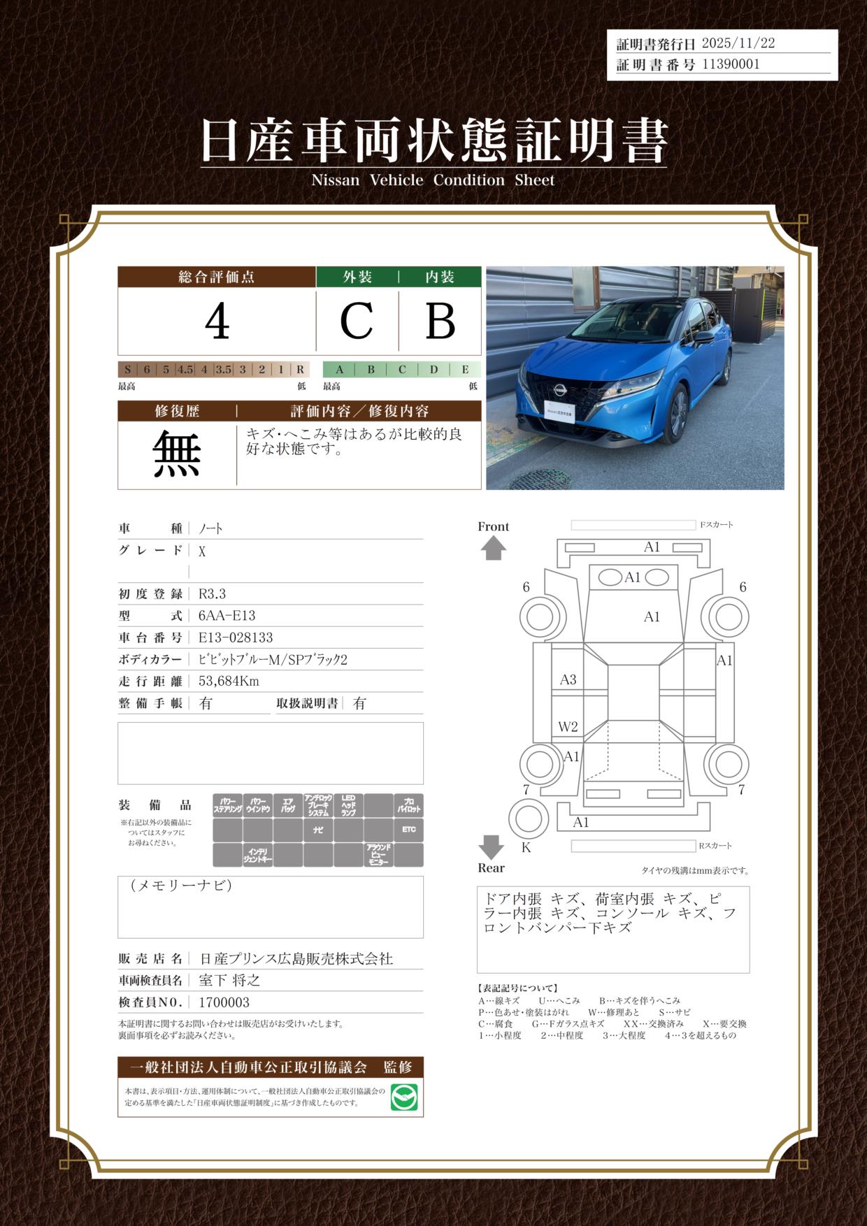 ノート 1200cc 1.2 X 元試乗車 ディーラーオプションナビ