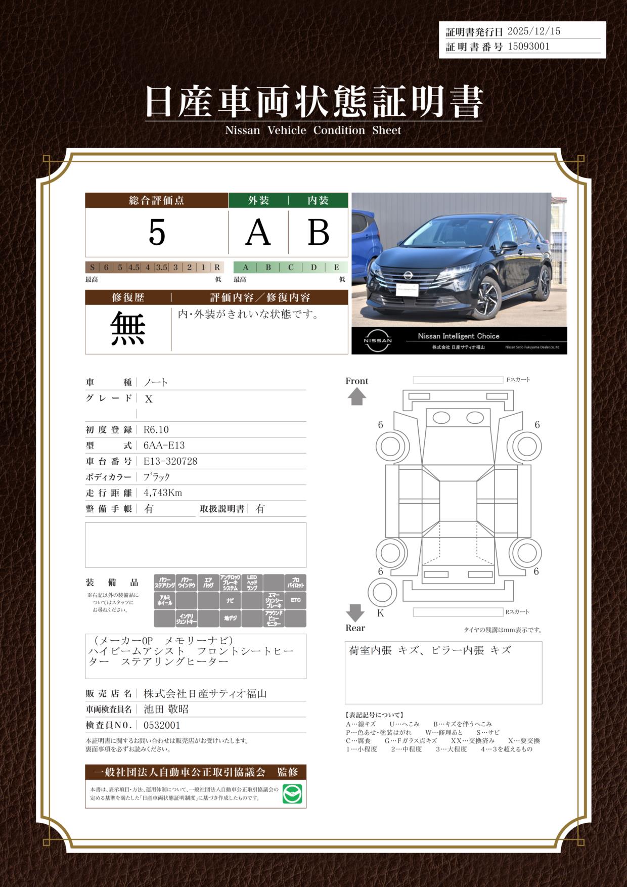 当店は全車に『車両状態証明書』を掲示〇◎状態証明書をもとに安心しておクルマをお選びいただけます_(._.)_