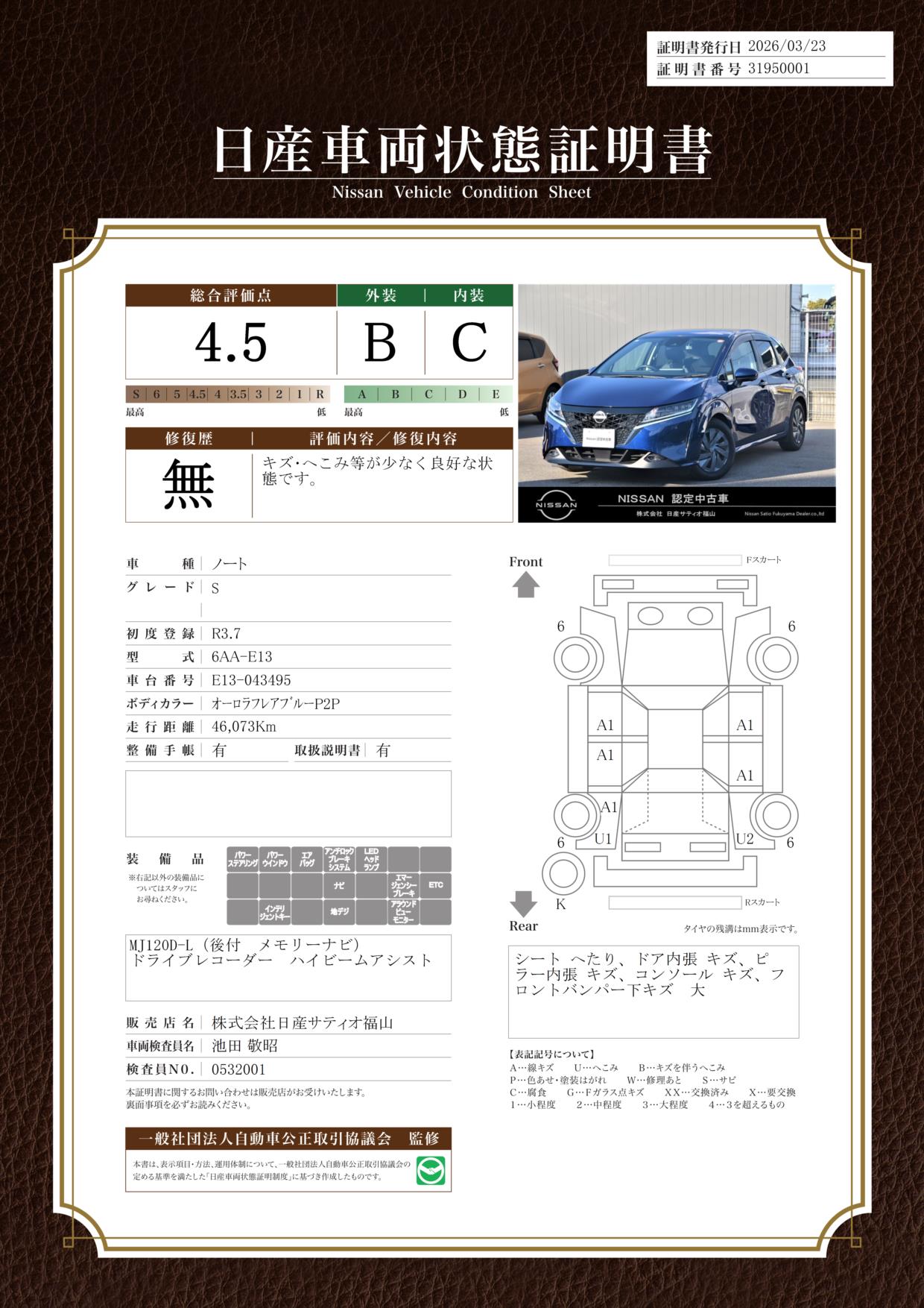 当店は全車に『車両状態証明書』を掲示〇◎状態証明書をもとに安心しておクルマをお選びいただけます_(._.)_