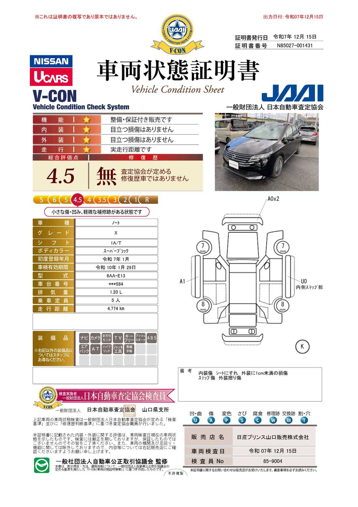 ノート 1200cc 1.2 X 元社用車・全周囲カメラ・純正ナビ
