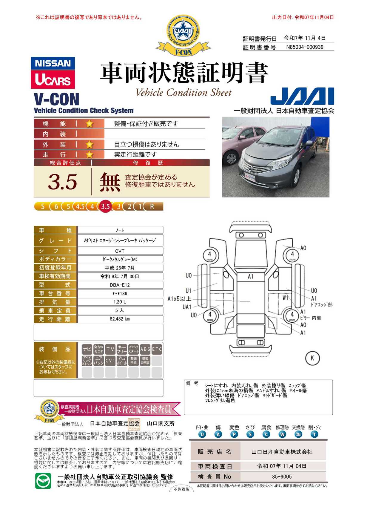 ノート 1200cc 1.2 メダリスト エマージェンシーブレーキ パッケージ ワンオーナー純正ナビ衝突軽減ブレーキETC