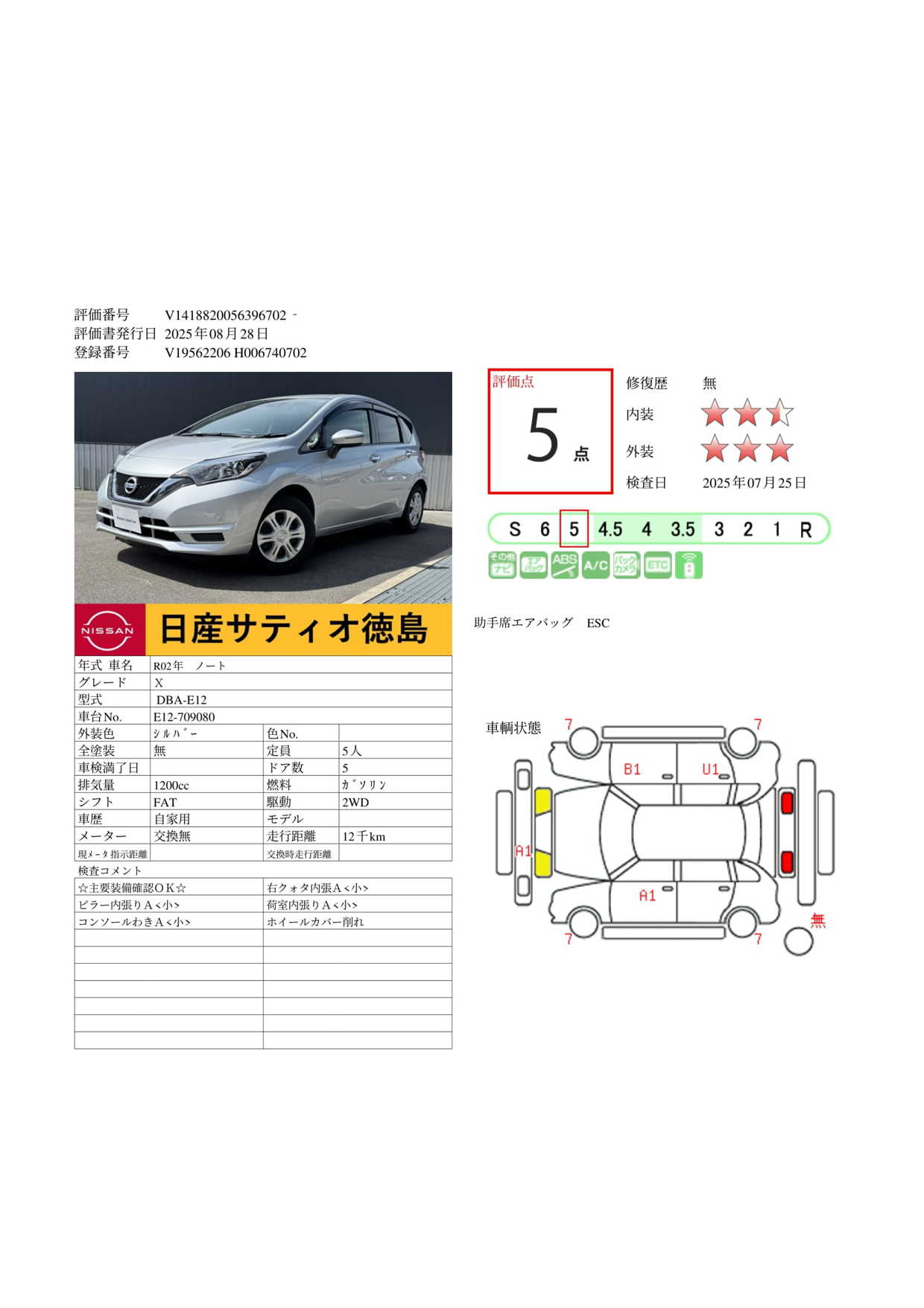 ノート 1200cc 1.2 X バックカメラ・ETC・Dレコ・ナビ