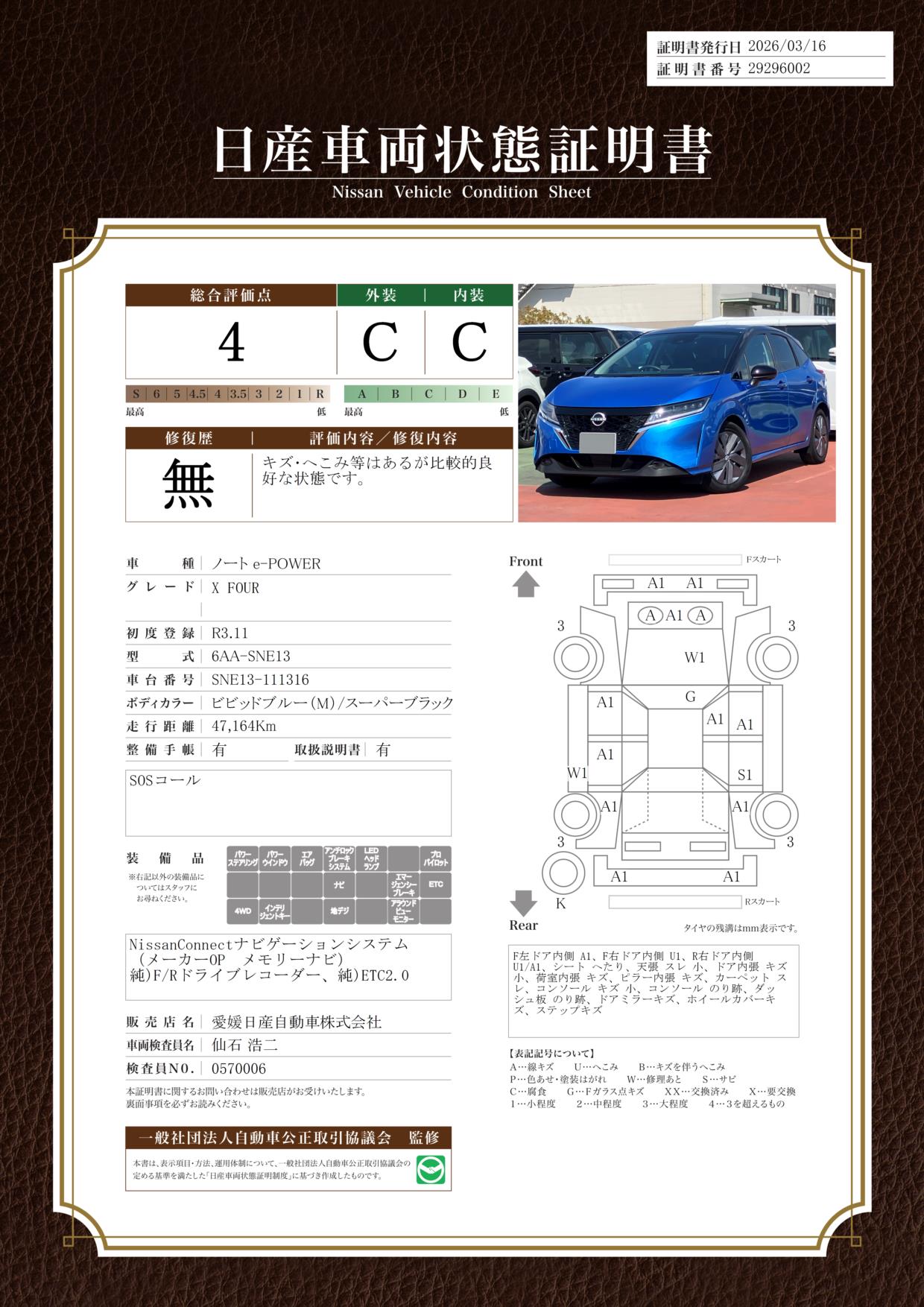 納得のクルマ選が心ゆくまでお手伝いできる「日産クオリティショップ」です。【認定中古車】 車両状態証明書を備えた全メーカー車(修復歴車以外)が対象。安心中古車選びの目印です。