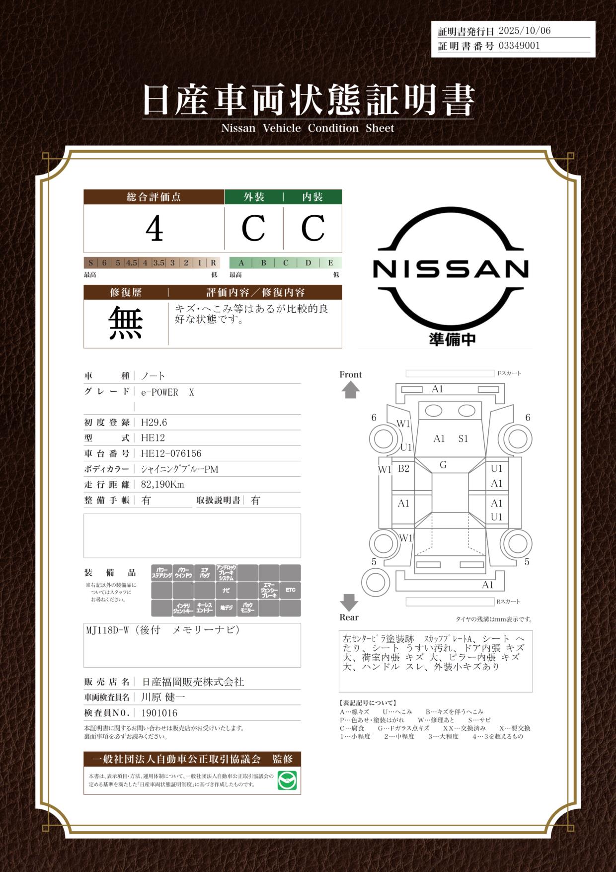 ノート 1200cc 1.2 e-POWER X ナビMJ118D-W ドラレコ ETC バックカメ