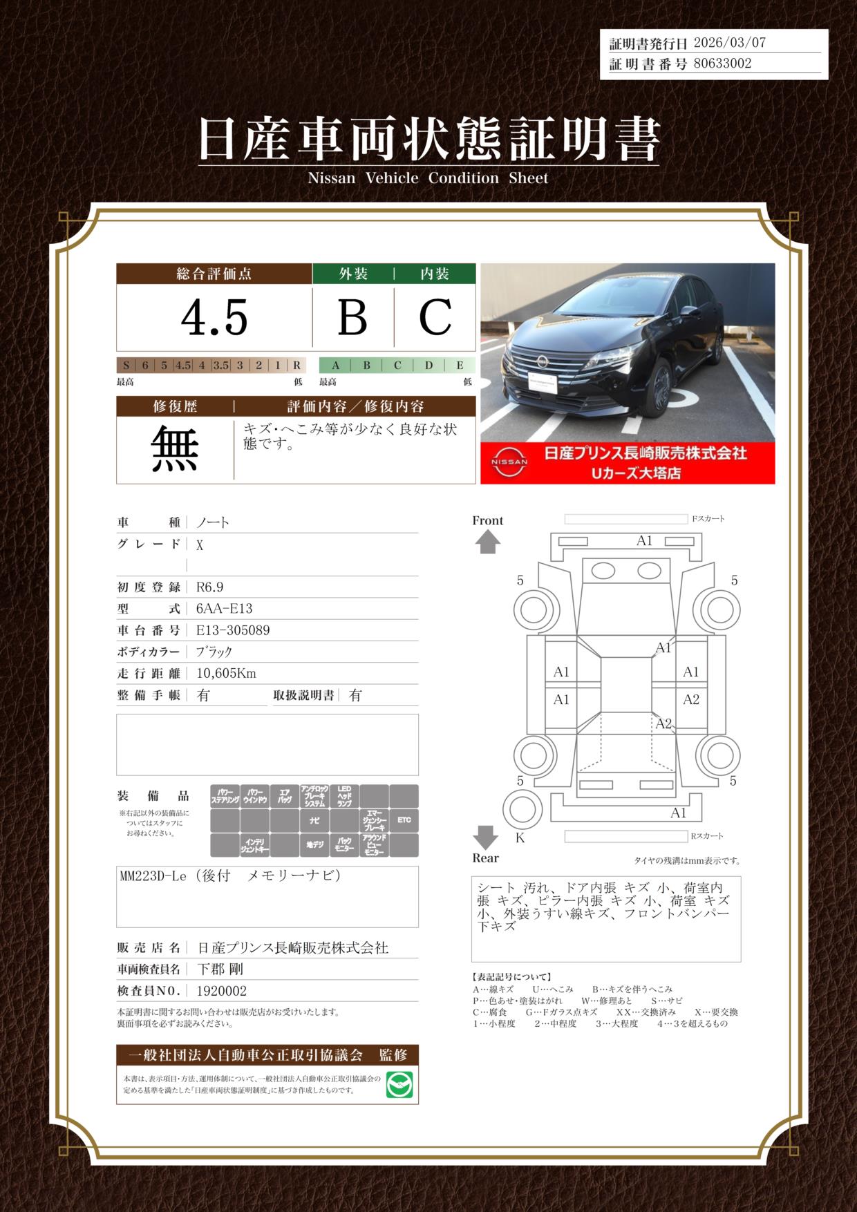 「車両状態証明書」は、査定協会監修のプロの検査員が公正かつ確かな基準で検査した”安心の証”です。