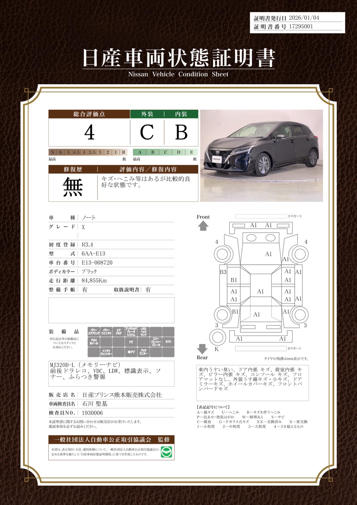 現状括弧書き内の年月まで車検有効期限が残っていますが、ご成約時に新しく車検を取り直します。なお取り直しの費用は車両価格に含まれています。