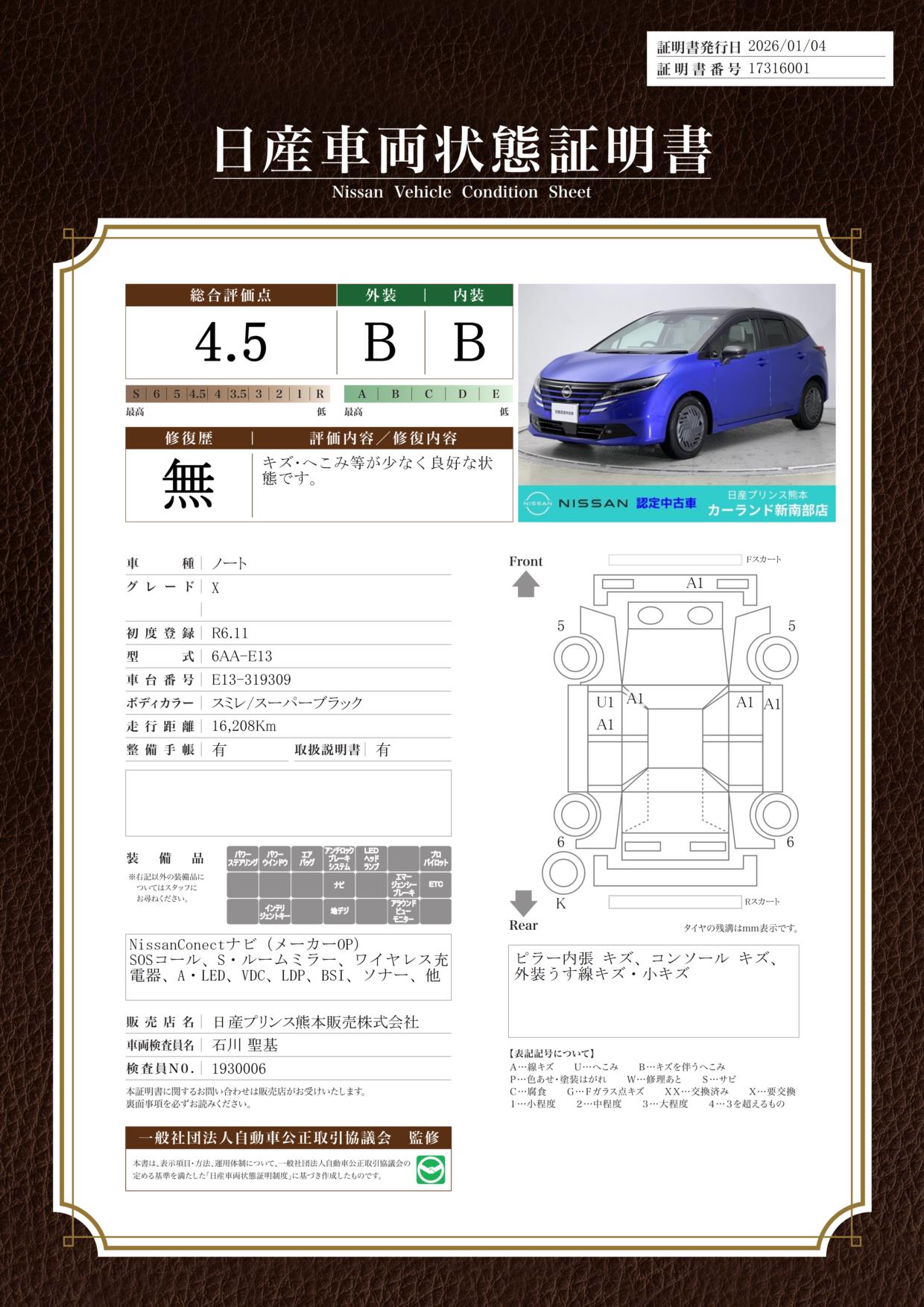 日産自動車認定の中古車販売店です。