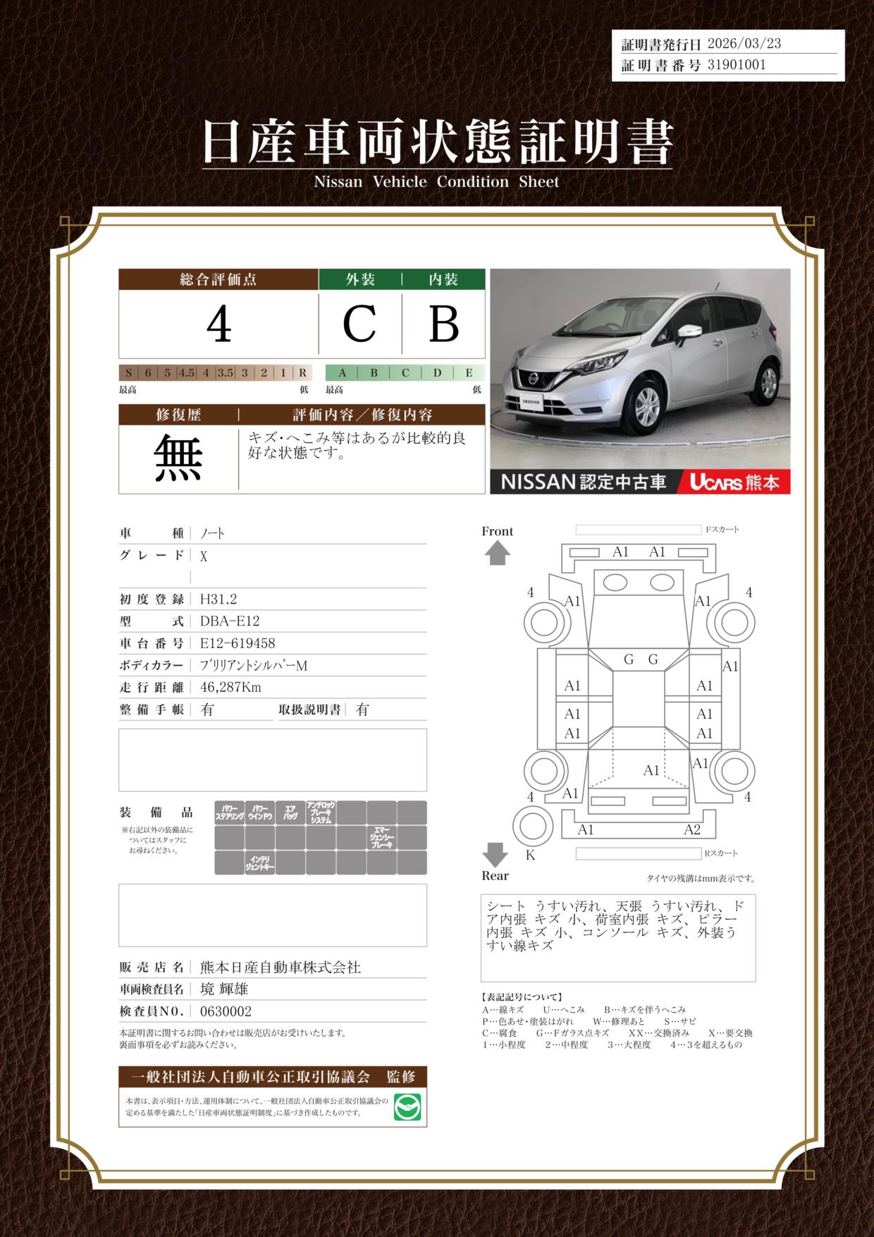 2019年式 ノート 入庫しました!障害物センサー★衝突被害軽減ブレーキ★ディーラー保証★