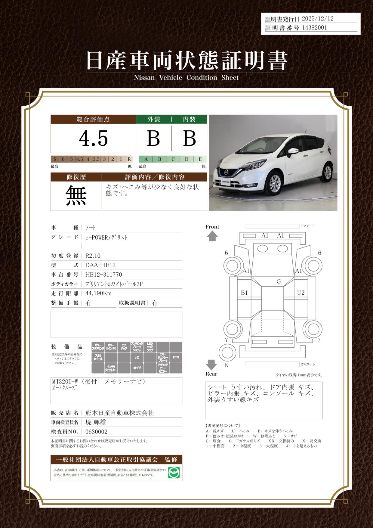 現状括弧書き内の年月まで車検有効期限が残っていますが、ご成約時に新しく車検を取り直します。なお取り直しの費用は車両価格に含まれています。