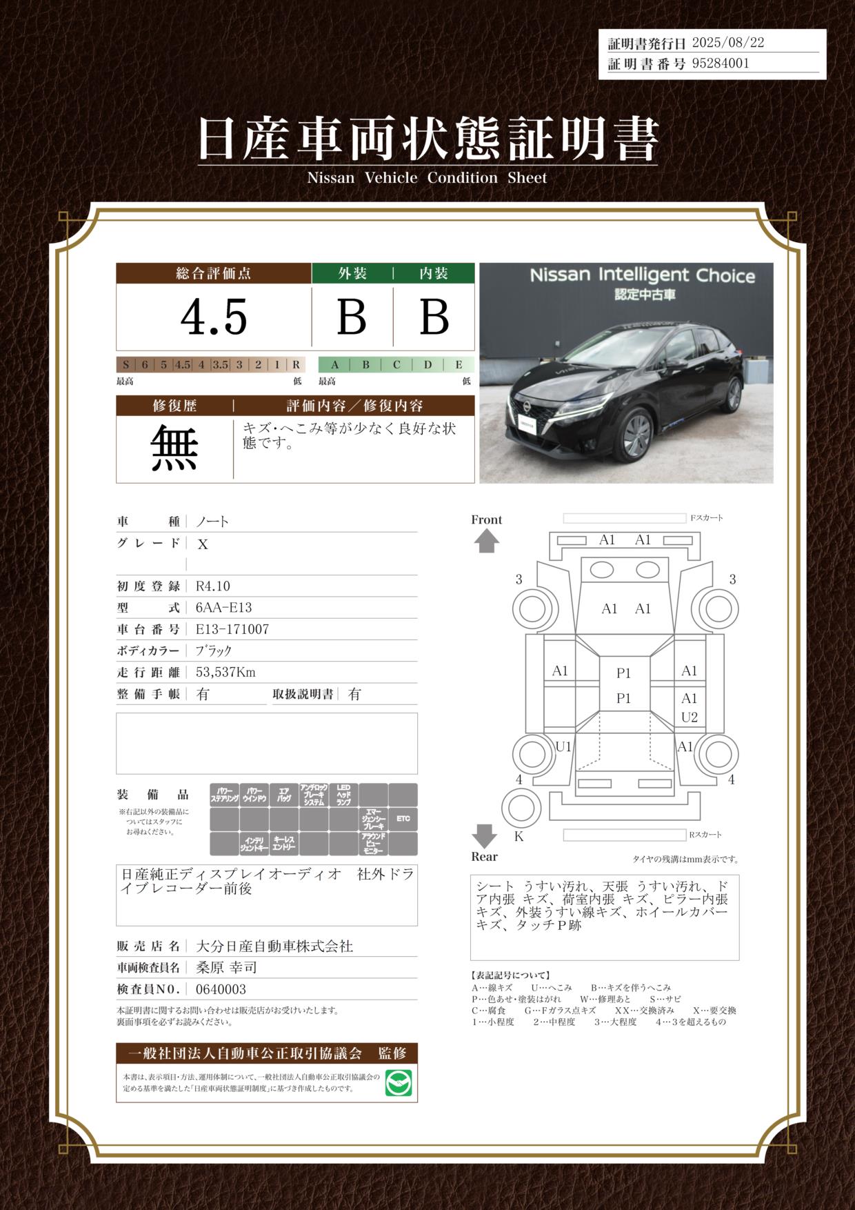 ノート 1200cc 1.2 X ピアノ調センタークラスターフィニッシャー