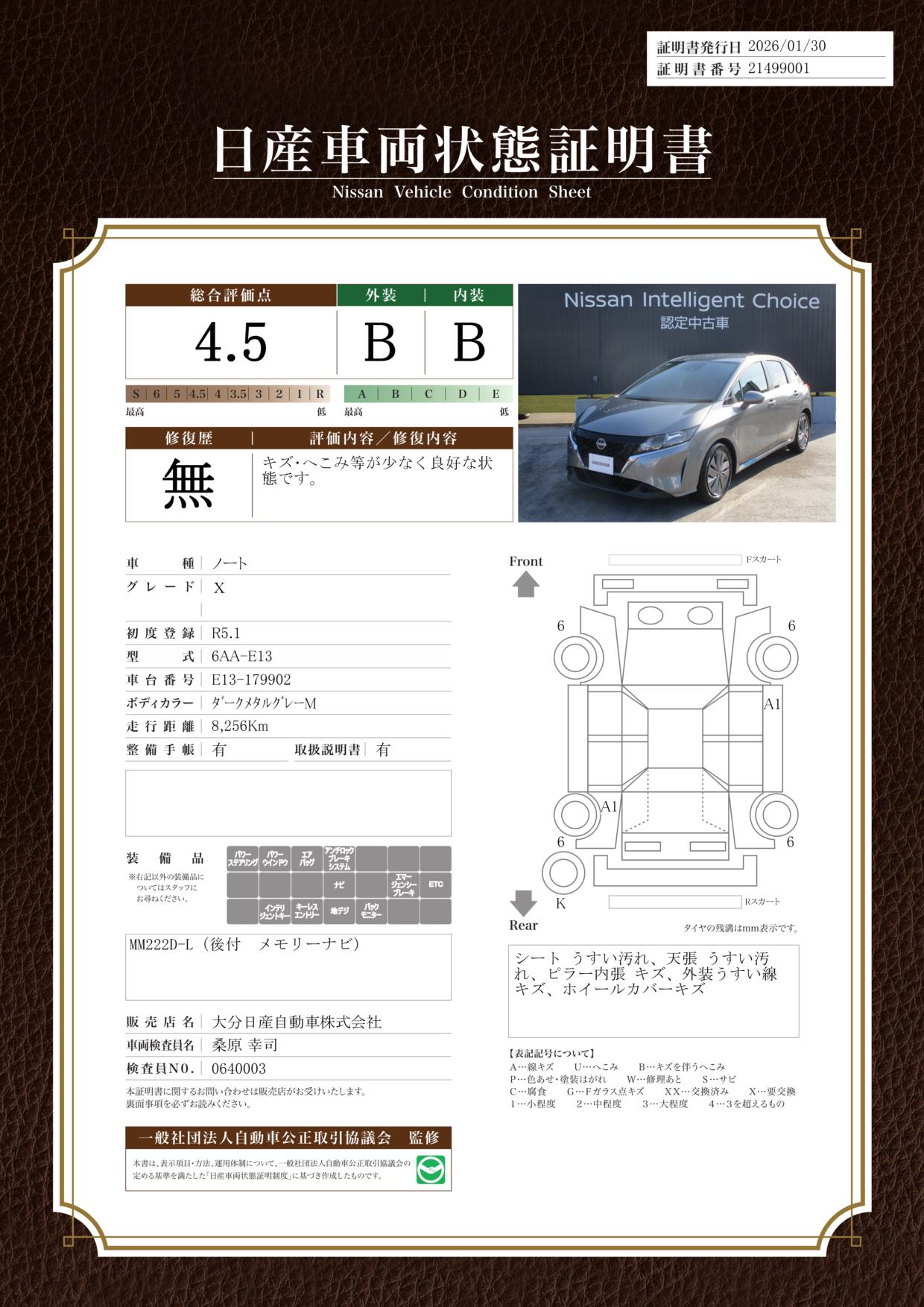 1.2 e-POWER X 日産オリジナルナビ取付パッケージ/インテ