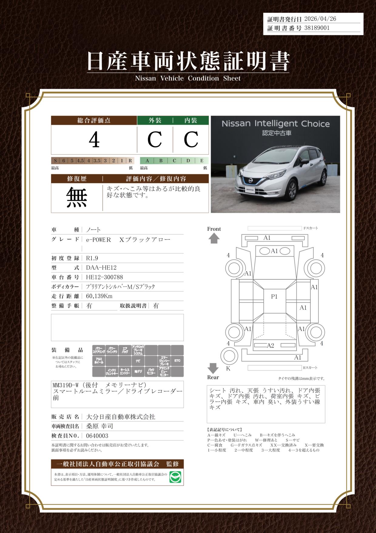 日産純正ナビゲーションMM319D-Wが装着されてます。360度廻りを見渡せるアラウンドビューモニター搭載です。