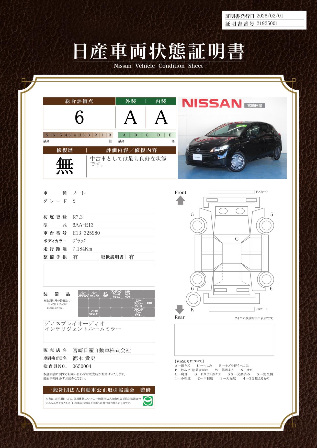 評価機関 : 日産車両状態証明