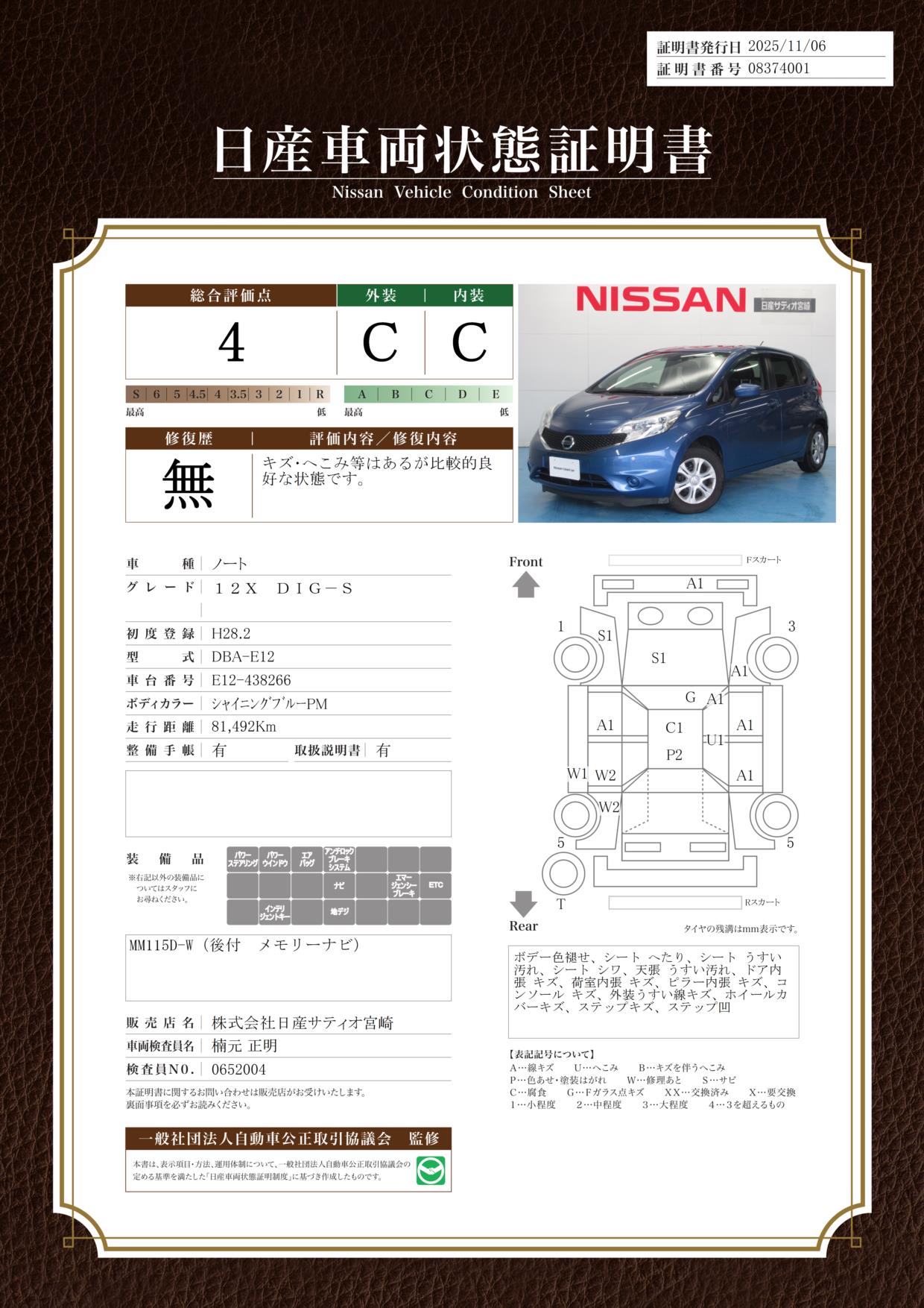 ノート 1200cc 1.2 X DIG-S CDチューナー