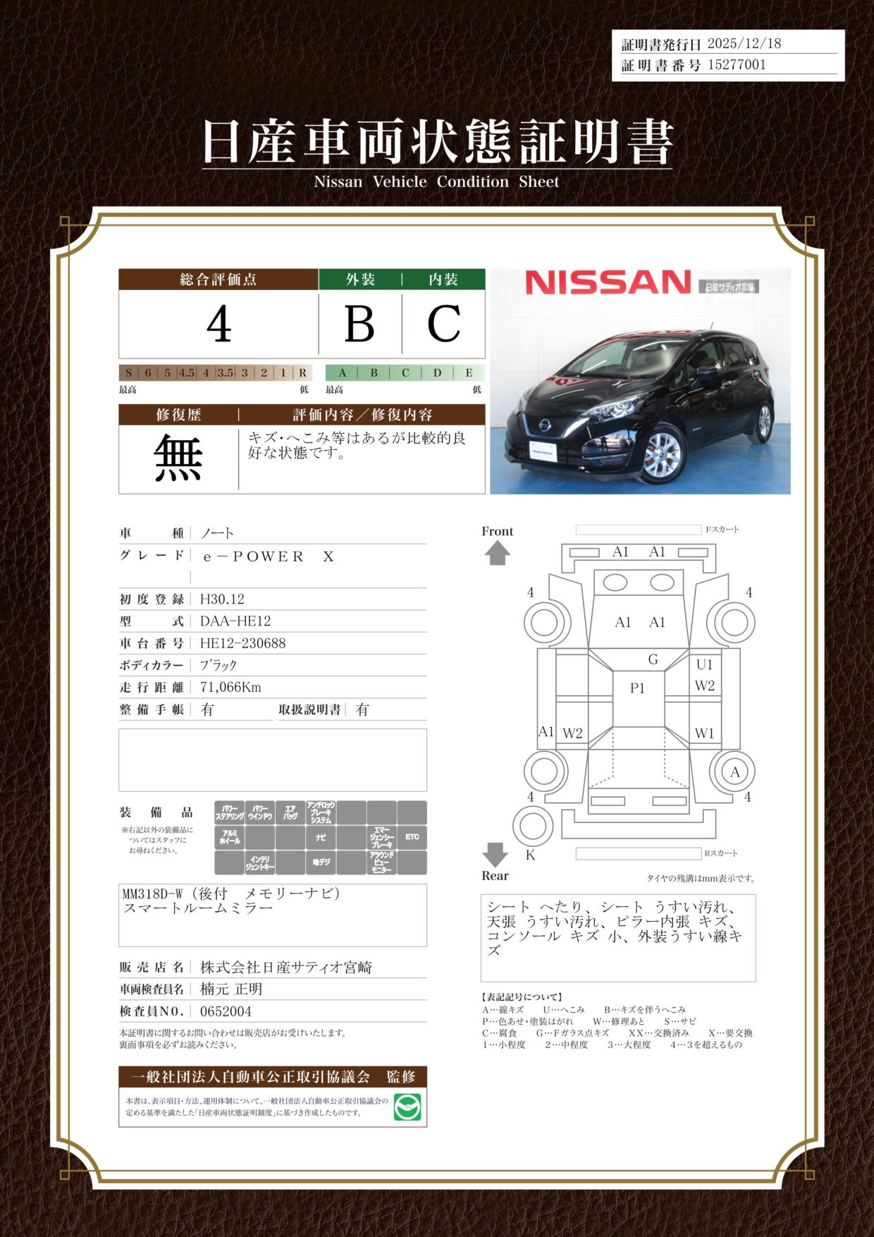 この度は当店を検索頂き誠にありがとうございます。今話題のe-Powerや100%電気で走る軽自動車サクラ、安全装置搭載車を多数展示!価格は総額表示で分りやすく、更に日産のワイド保証付で安心!お買得車を多数ご準備して、ご来場を心よりお待ちしております。12月は『冬のお買得中古車フェア!』を開催!期間R7年12月1日(月)~12月29日(月)迄。毎週、火・水曜日が定休日。