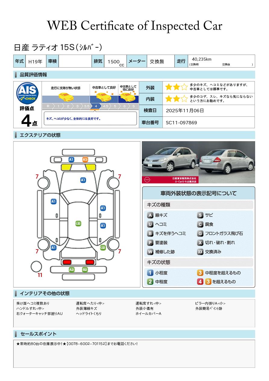 ティーダラティオ 1500cc 1.5 15S Wエアバック オートエアコン パワステ