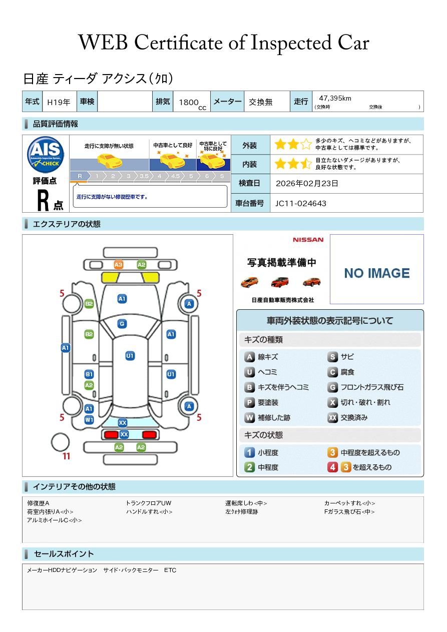 現状括弧書き内の年月まで車検有効期限が残っていますが、ご成約時に新しく車検を取り直します。なお取り直しの費用は車両価格に含まれています。