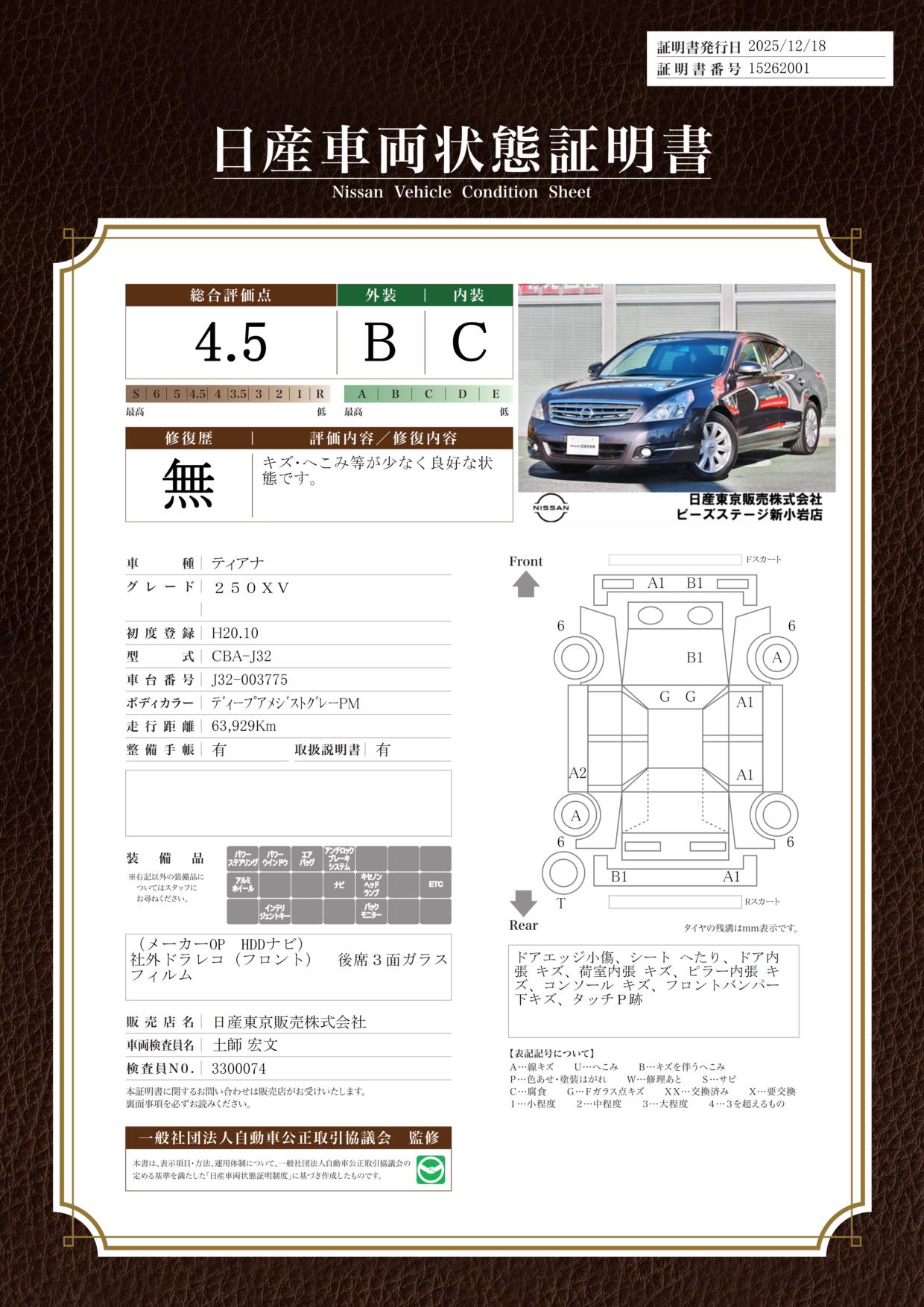 現状括弧書き内の年月まで車検有効期限が残っていますが、ご成約時に新しく車検を取り直します。なお取り直しの費用は車両価格に含まれています。