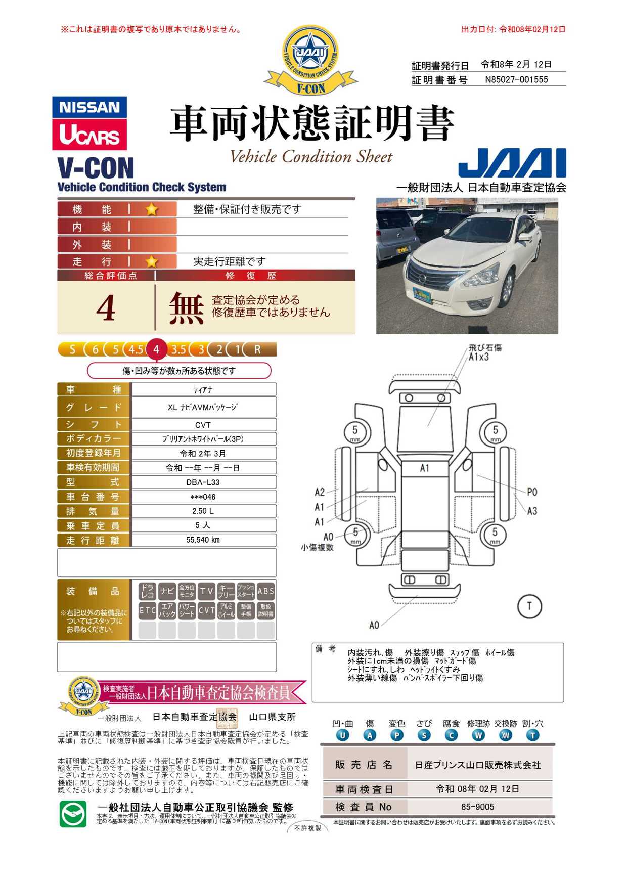 現状括弧書き内の年月まで車検有効期限が残っていますが、ご成約時に新しく車検を取り直します。なお取り直しの費用は車両価格に含まれています。