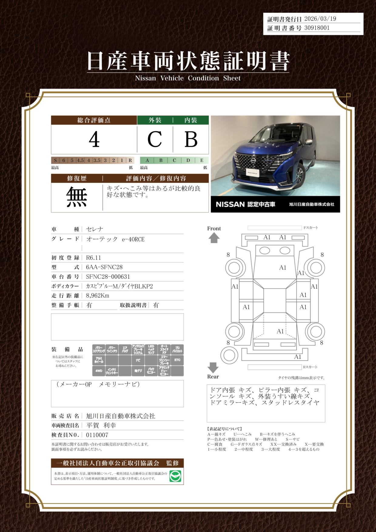 こちらのクルマは 「日産認定中古車」。 だから、4つの安心をお約束。