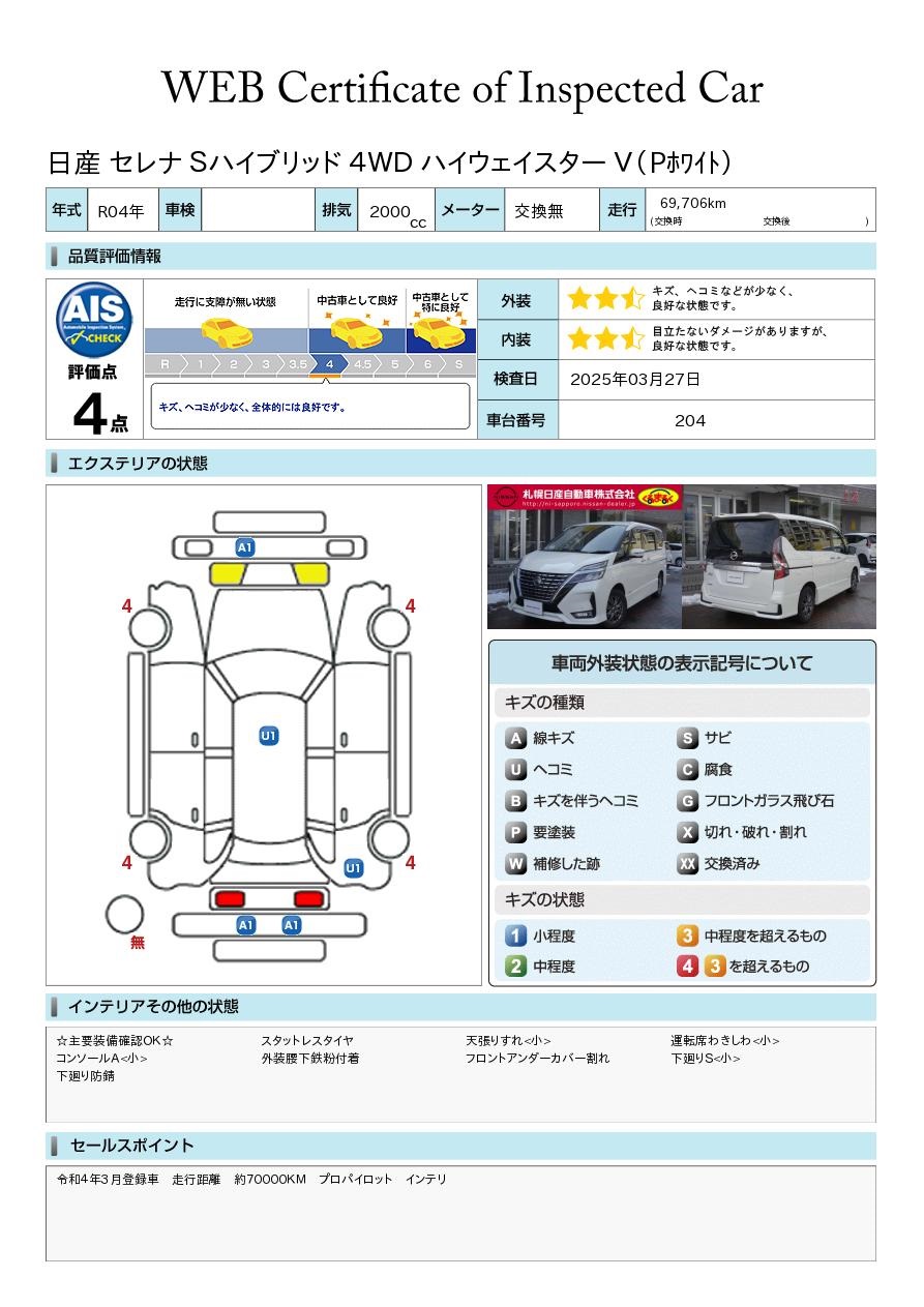 くるまるく八軒の店舗紹介ページをご覧頂きありがとうございます。 ■当店はディーラーならではの高品質なお車をバリエーション豊富に展示中 ■自社整備工場も完備しておりますので、メンテナンスも安心 ■全車走行メーター管理システム導入(日本オートオークション協議会) ■AIS評価書付車両(第三者評価書)も多数ございますので、ご安心ください ■日産「ワイド保証」で「1年間走行距離無制限」の「無料保証付」