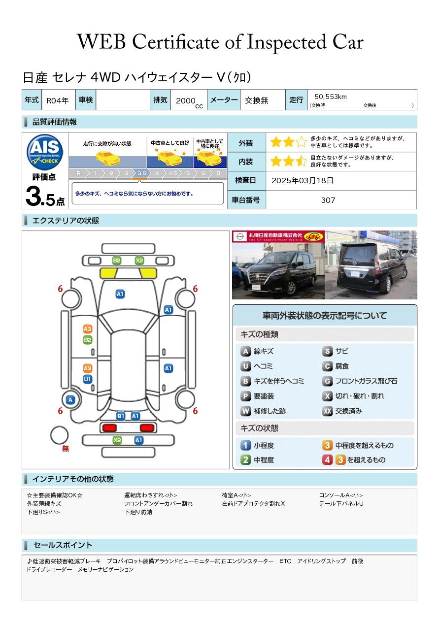 現状括弧書き内の年月まで車検有効期限が残っていますが、ご成約時に新しく車検を取り直します。なお取り直しの費用は車両価格に含まれています。