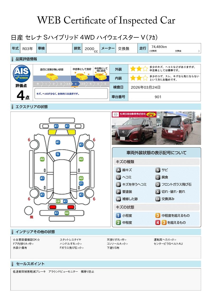 現状括弧書き内の年月まで車検有効期限が残っていますが、ご成約時に新しく車検を取り直します。なお取り直しの費用は車両価格に含まれています。