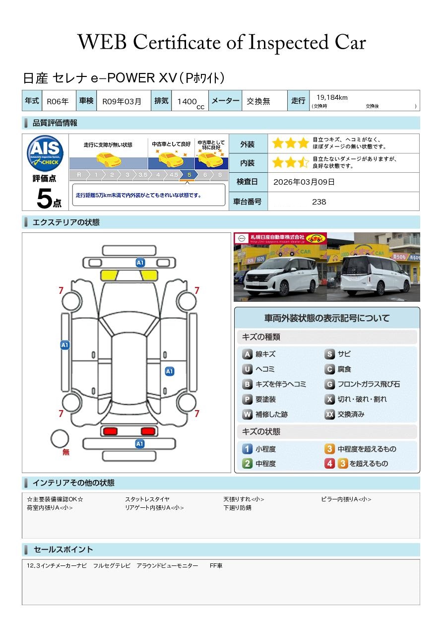 日産車はモチロンのこと 他メーカーでも軽自動車からミニバンまで幅広く展示中! 「くるまるく」店の中でもスケールの大きい店舗ですので、在庫も豊富に常時40台~60台展示中! AIS評価書付車両(第三者評価書)も多数ございますので、ご安心ください♪ 安心の日産「ワイド保証」や「自社ピット」完備! スタッフ一同お待ち申し上げております^^ 全車走行メーター管理システム導入☆(日本オートオークション協議会)