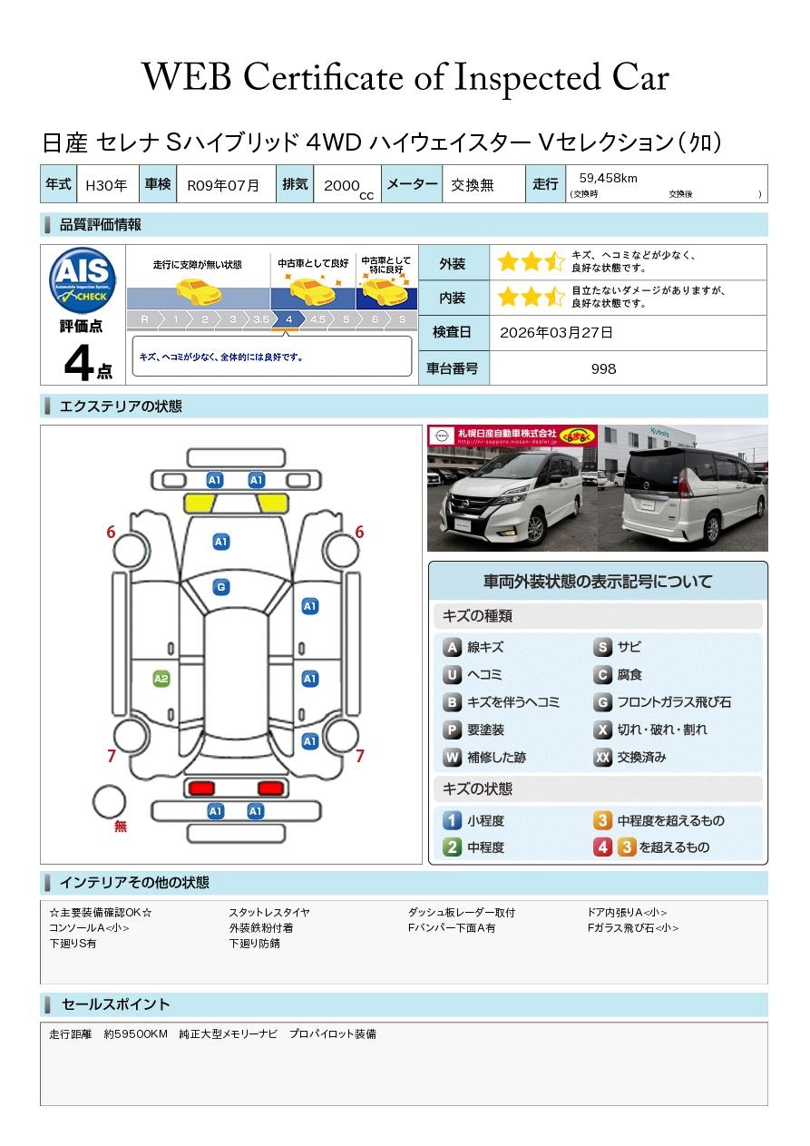 日産車はモチロンのこと 他メーカーでも軽自動車からミニバンまで幅広く展示中! 「くるまるく」店の中でもスケールの大きい店舗ですので、在庫も豊富に常時40台~60台展示中! AIS評価書付車両(第三者評価書)も多数ございますので、ご安心ください♪ 安心の日産「ワイド保証」や「自社ピット」完備! スタッフ一同お待ち申し上げております^^ 全車走行メーター管理システム導入☆(日本オートオークション協議会)