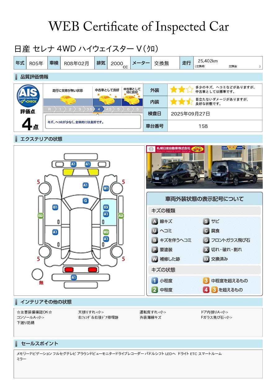 現状括弧書き内の年月まで車検有効期限が残っていますが、ご成約時に新しく車検を取り直します。なお取り直しの費用は車両価格に含まれています。