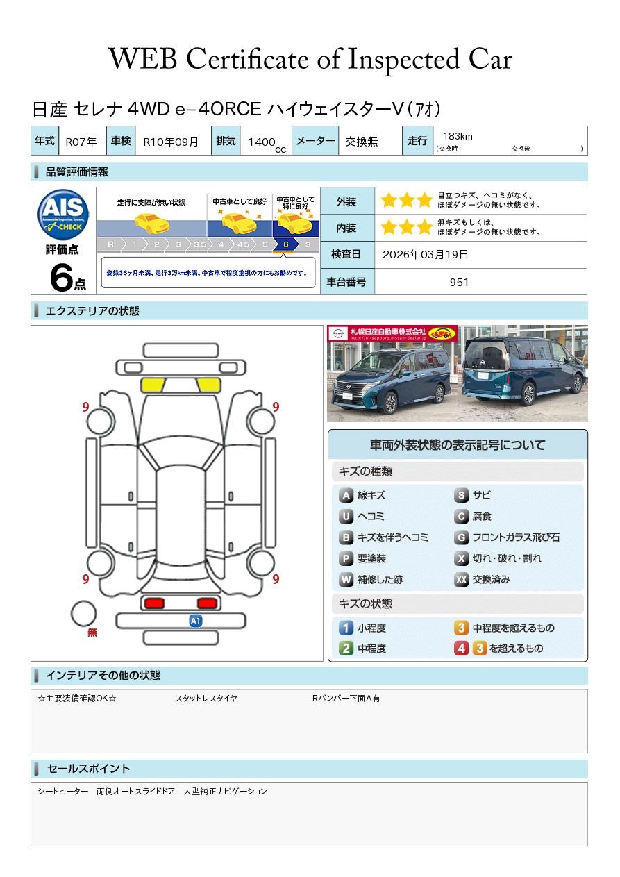 日産車は勿論のこと他メーカーでもコンパクト車からワゴン車まで幅広く展示中! 「くるまるく」店の中でもスケールの大きい店舗ですので、在庫数も豊富に常時90台~100台展示中! AIS評価書付車両(第三者評価書)も多数ございますので、ご安心ください♪ 安心の日産「ワイド保証」や「自社ピット」完備! スタッフ一同お待ち申し上げております^^ 全車走行メーター管理システム導入☆(日本オートオークション協議会)
