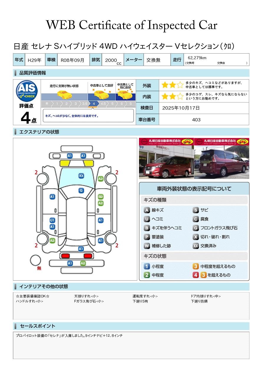 プロパイロット装備の「セレナ」が入庫しました。9インチナビ+12.8インチ後席モニター・エマージェンシーブレーキ・VDC・LDW装備です。