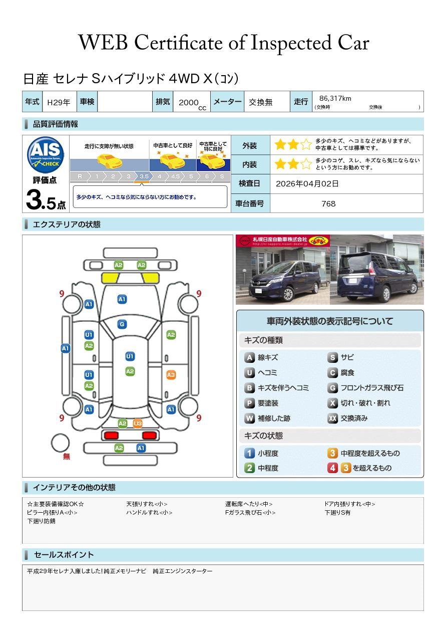 平成29年セレナ入庫しました!純正メモリーナビ 純正エンジンスターター後席フリップダウンモニター アラウンドビューモニター 純正ドライブレコーダー