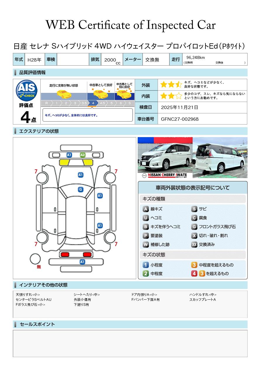 セレナ 2000cc 2.0 ハイウェイスター V 4WD プロパイロット 純正9インチナビ
