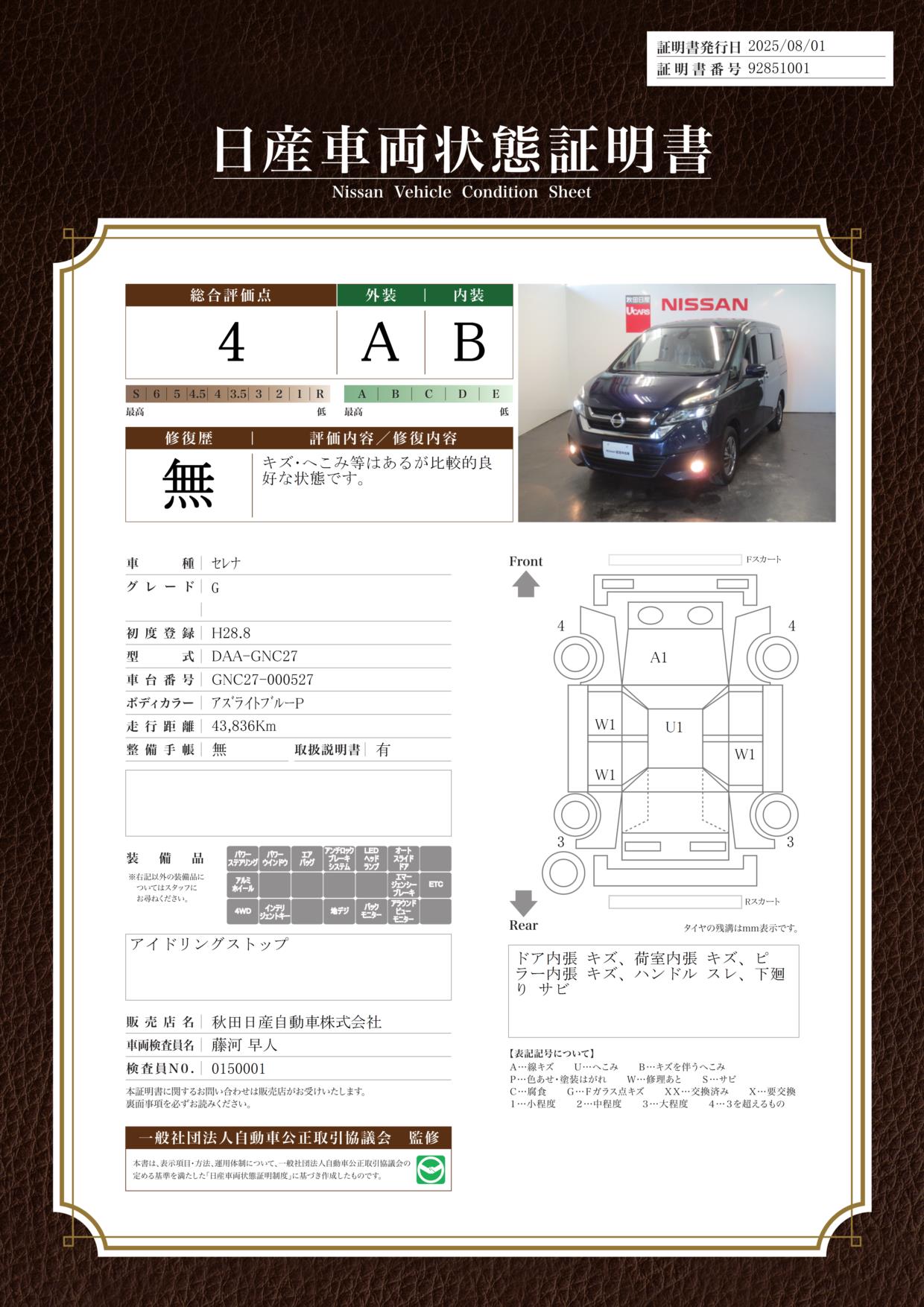 現状括弧書き内の年月まで車検有効期限が残っていますが、ご成約時に新しく車検を取り直します。なお取り直しの費用は車両価格に含まれています。
