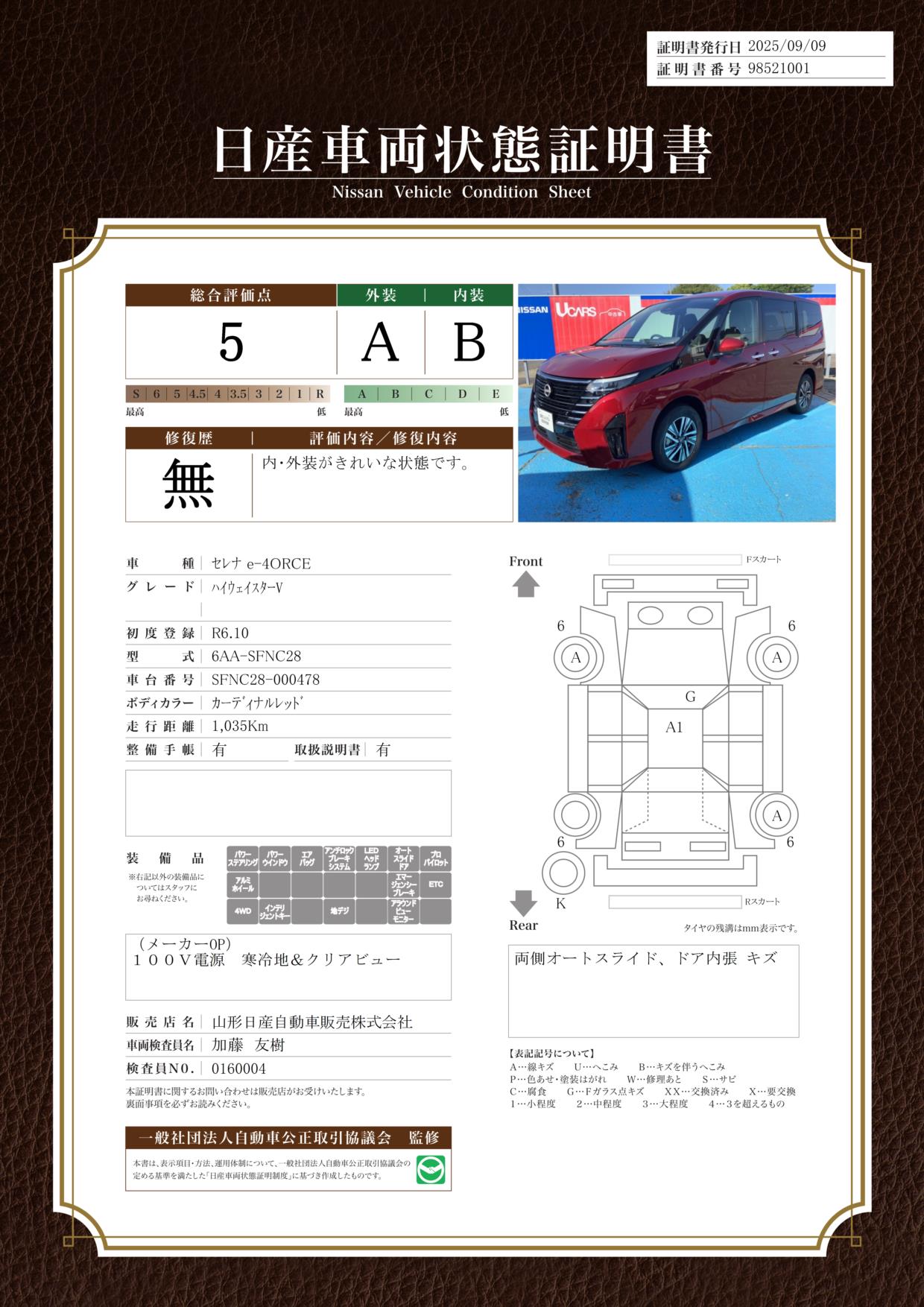 評価機関 : 日産車両状態証明