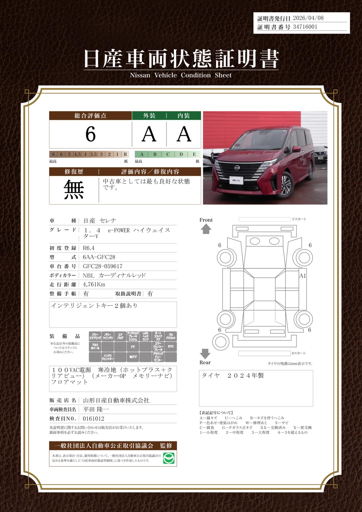 令和6年式 試乗車UP 上級グレード e-POWERハイウェイスターV 走行4760km★2WD★大型NCナビ★プロパイ★アラモニ★前後ドラレコ★ETC2.0★LED★ワイヤレス充電★100V AC電源★