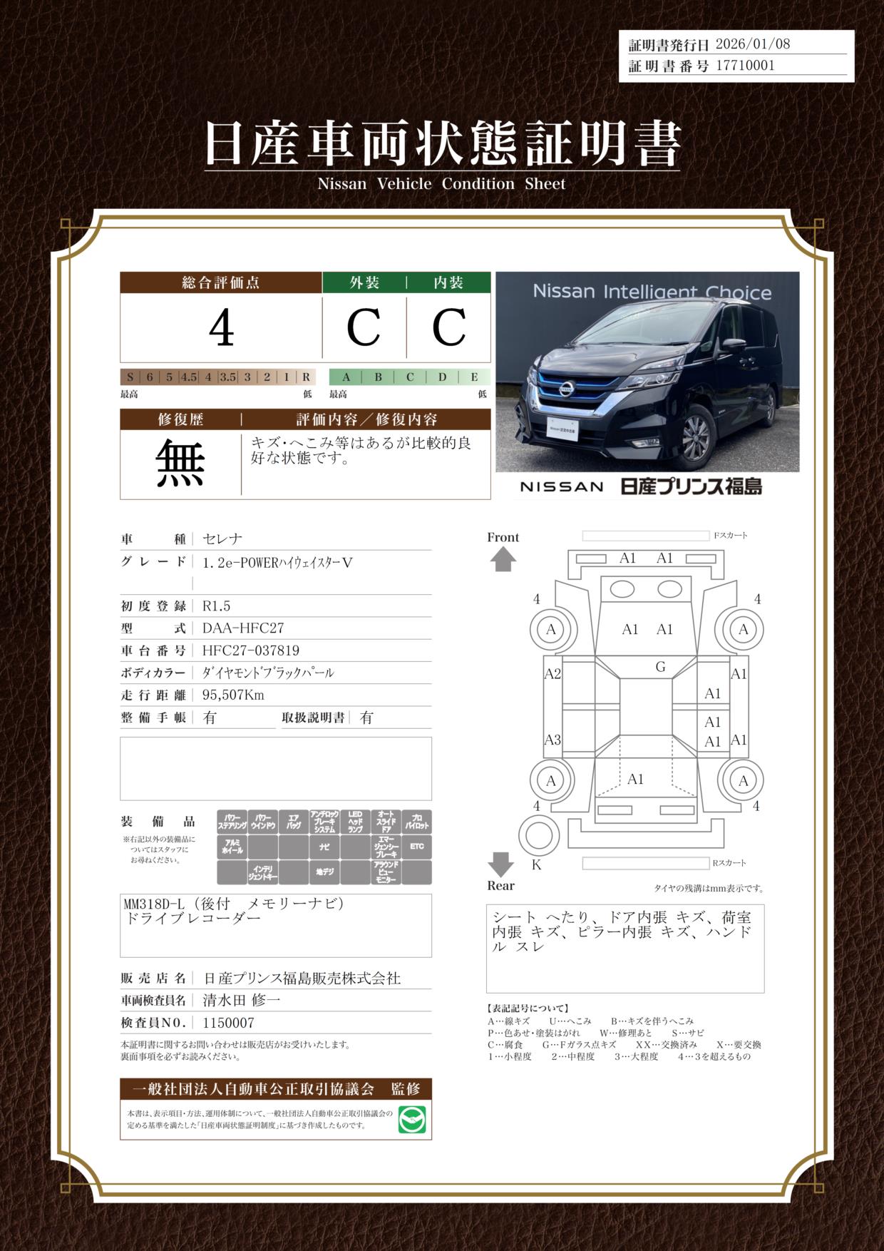 現状括弧書き内の年月まで車検有効期限が残っていますが、ご成約時に新しく車検を取り直します。なお取り直しの費用は車両価格に含まれています。
