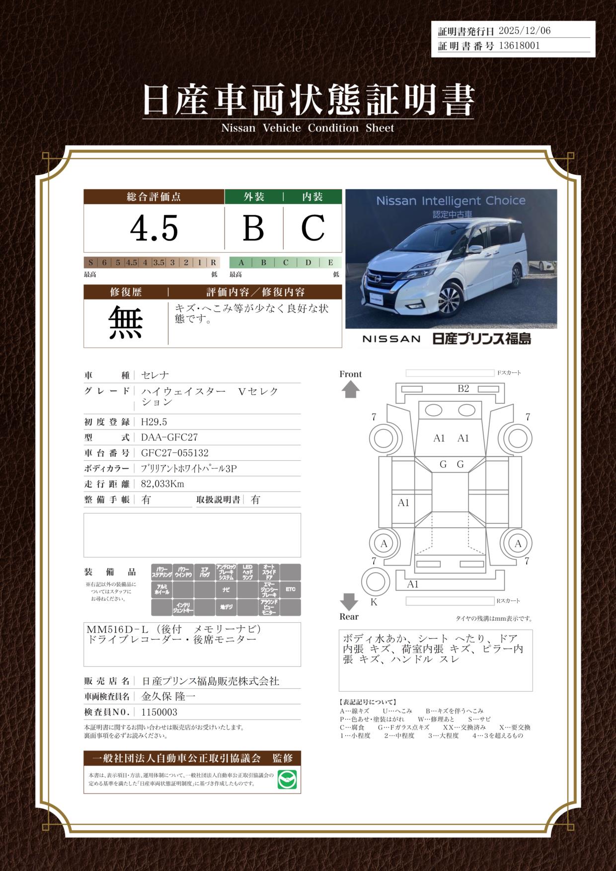 セレナ 2000cc 2.0 ハイウェイスター Vセレクション 純正ナビ 全周囲カメラ 後席モニター